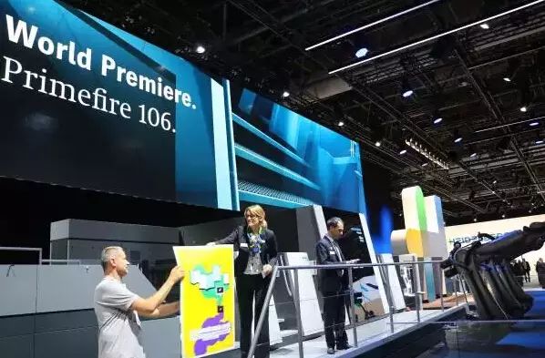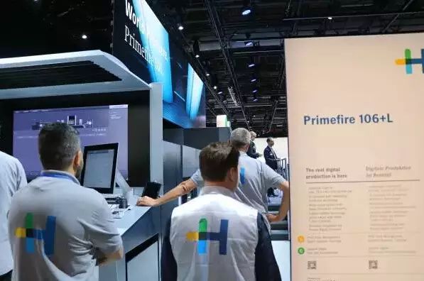 Meluncurkan produk baru, mesin cetak digital Primefire 106, tiga lengan robot yang mengontrol layar terpisah selalu merespon ucapan pembawa acara, dan harus mengatakan bahwa "mereka sangat pandai bermain di kota".